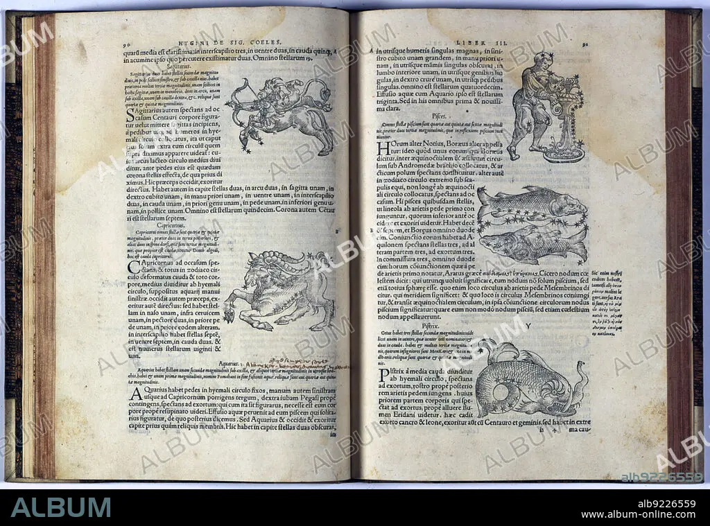 Caption: Pages of the book on mythology and iconography 'Fabolarum liber' by Cayo Julio Higinio and others. Printed in Basel by Juan Hervagio, 1549.
