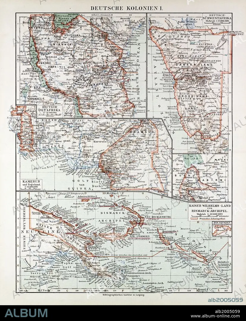 MAP OF GERMAN COLONIES, GERMAN NEW GUINEA, CAMEROON, 1899.