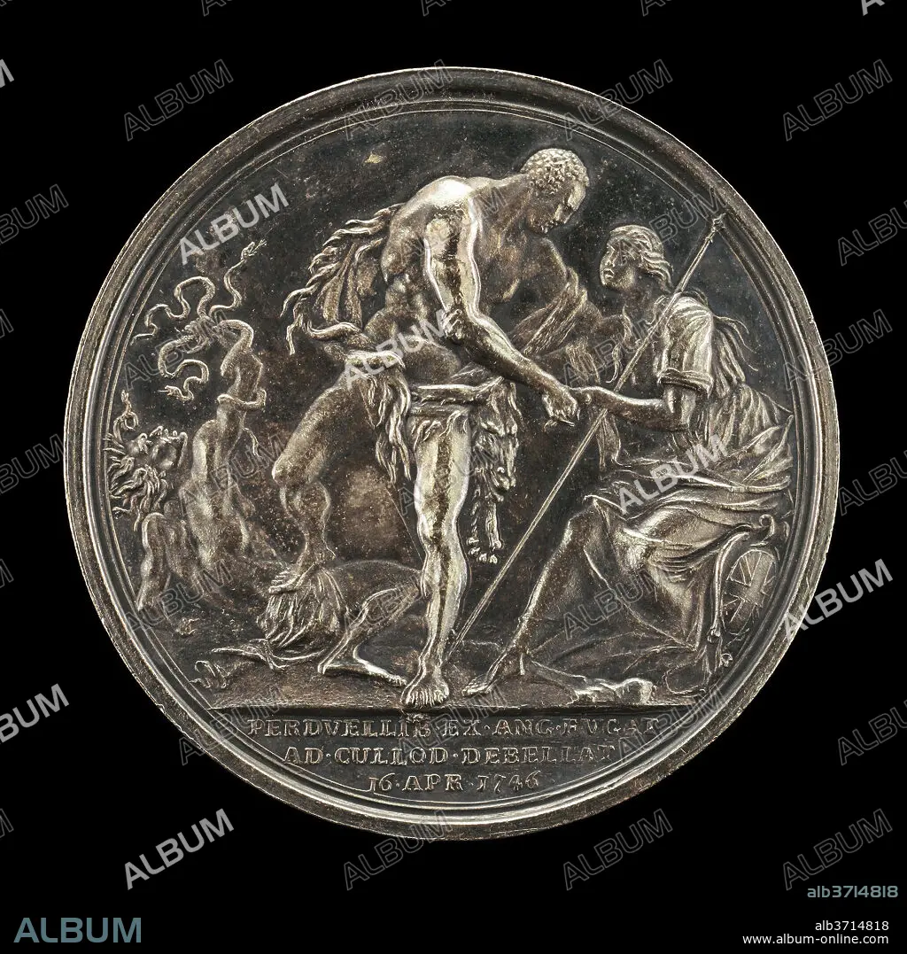 Caption: The Duke as Hercules, Overcoming Discord and Raising Britannia [reverse]. Dated: 1746. Dimensions: overall (diameter): 5.09 cm (2 in.) gross weight: 54.48 gr (0.12 lb.) axis: 12:00. Medium: silver.