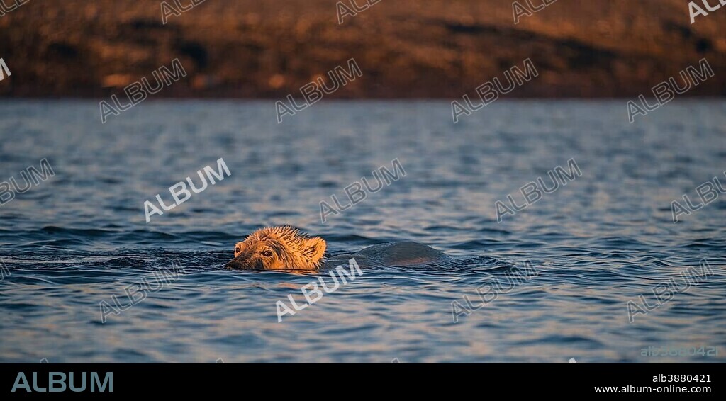 Polar Bear (Ursus maritimus) swimming in the sea, Kaktovik, Barter Island, Beaufort Sea, Alaska, USA, North America.