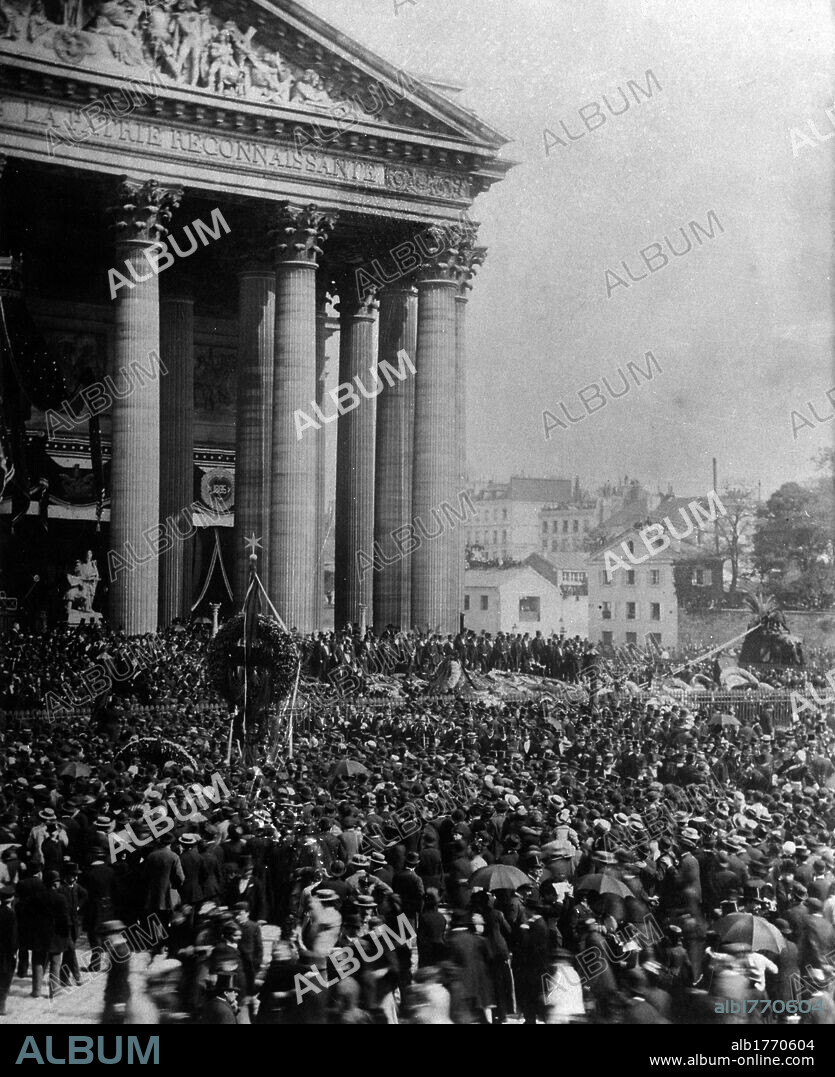 Crowd in front of the Pantheon during the funeral of French writer Victor Hugo. Paris, 1st June 1885