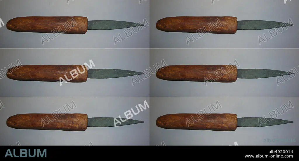 Caption: Chisel, New Kingdom, Dynasty 18, Joint reign of Hatshepsut and Thutmose III, ca. 14791458 B.C., From Egypt, Upper Egypt, Thebes, Deir el-Bahri, Temple of Hatshepsut, Foundation Deposit 4 (D), 192324, Wood, bronze or copper alloy, l. 27 cm (10 5/8 in)