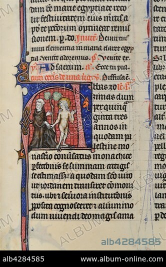 Bishop Zosimus and the naked woman. Breviary for Paris, folio 325. Early 14th century manuscript. Parchment