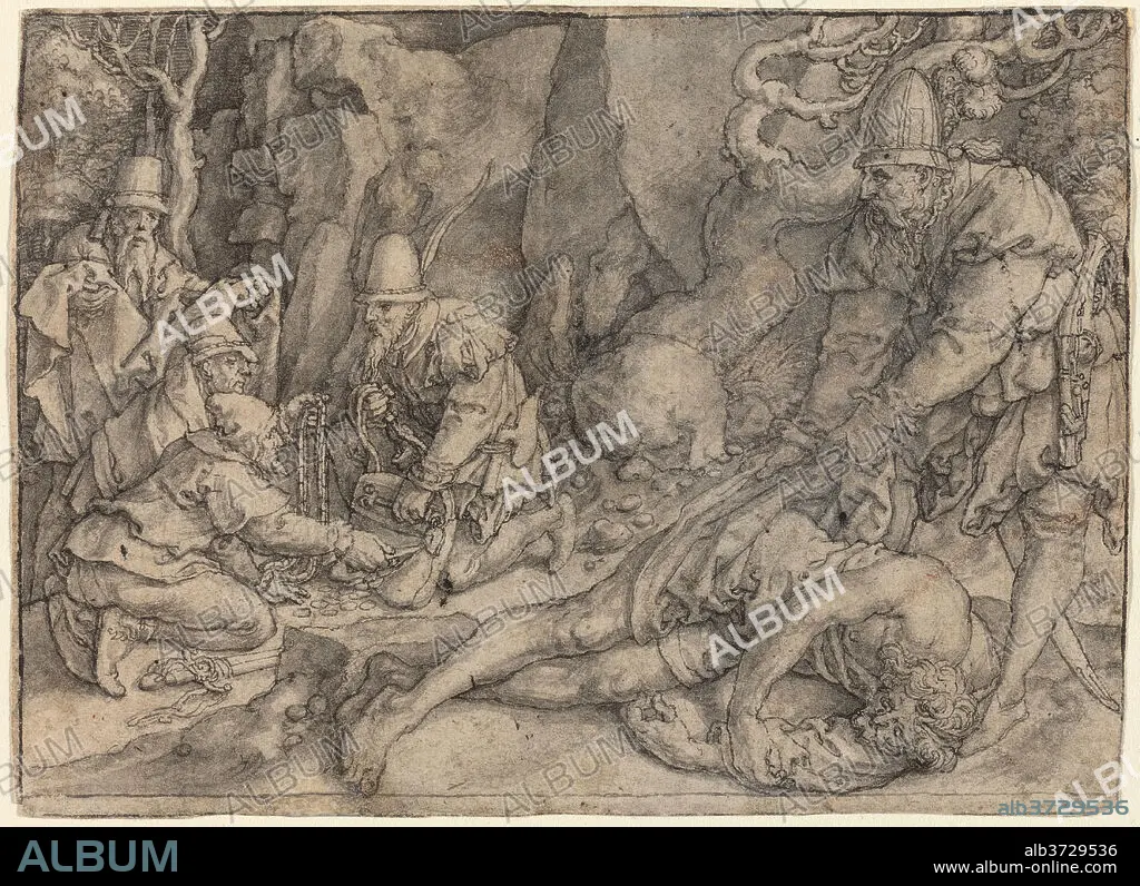 Caption: A Man Overpowered By Thieves. Dated: c. 1554. Dimensions: overall: 8.1 x 11.1 cm (3 3/16 x 4 3/8 in.). Medium: black ink and gray wash on buff laid paper.