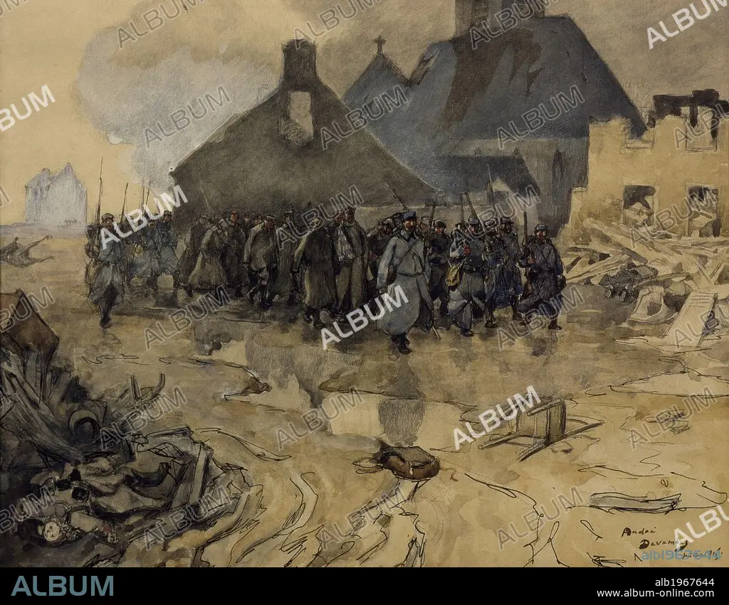Caption: The patrol returning, July 1915, by Andre Edouard Devambez (1867-1944). World War I, France, 20th century.