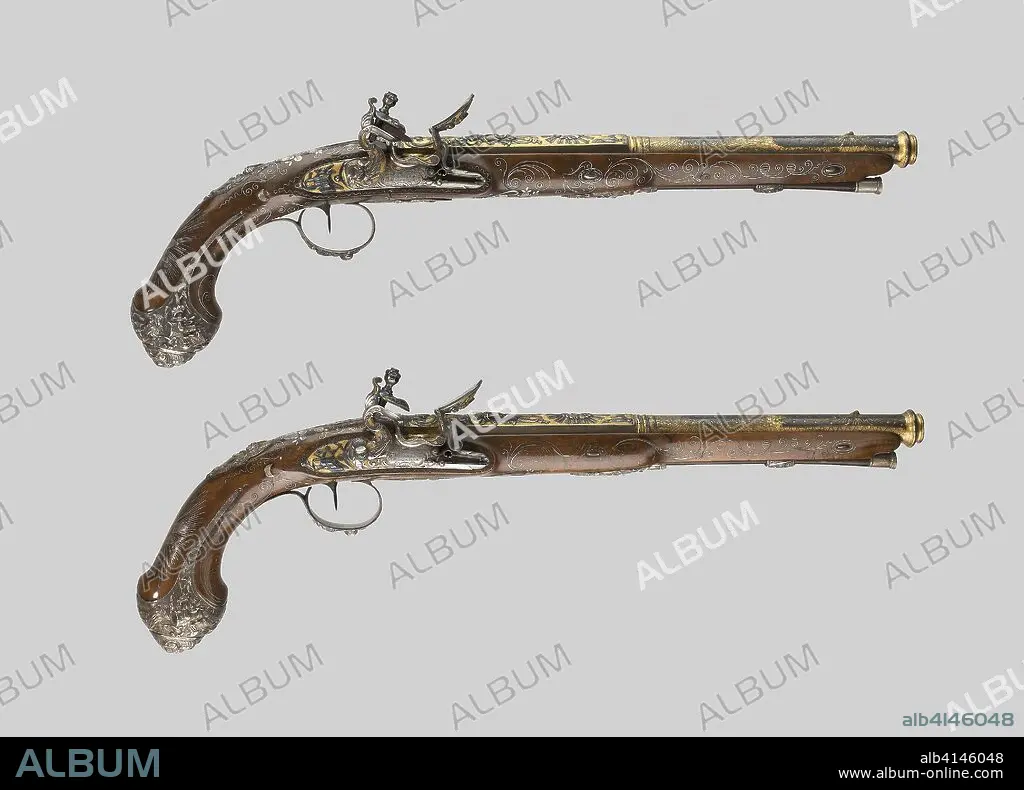 Caption: Pair of Presentation Flintlock Pistols in the Eastern Fashion. Gunsmith: Vergnes; (French, active about 1825-45) Marseille. Date: 1801-1825. Dimensions: L. 51.5 cm (20 1/4 in.)