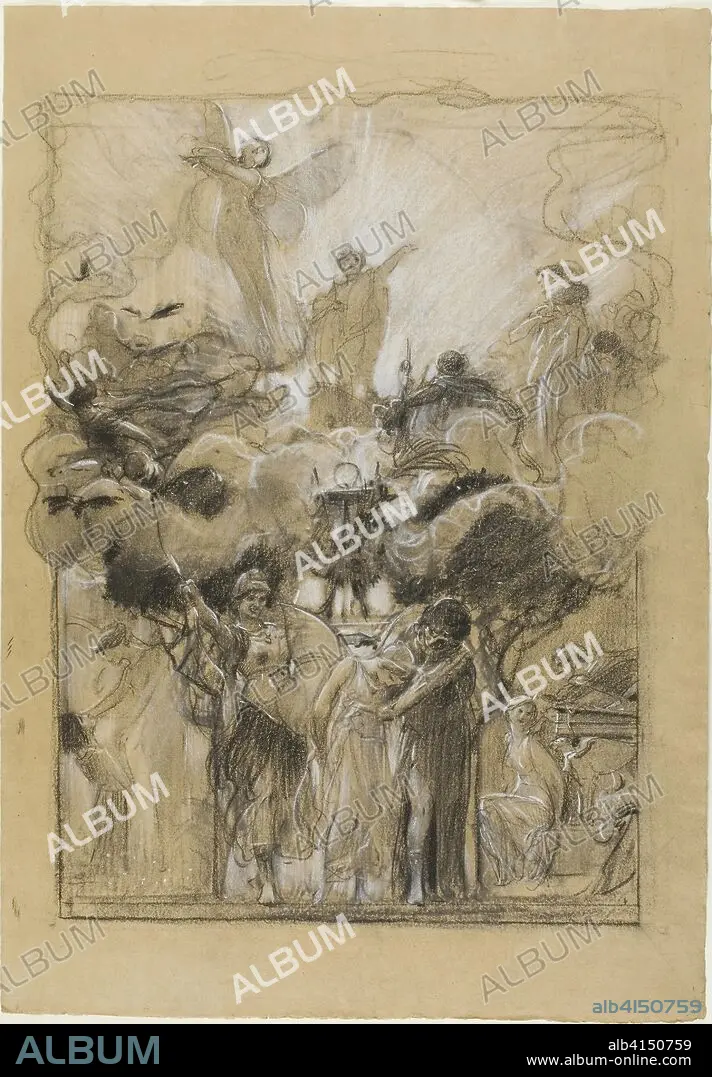 ADOLF HIRÉMY-HIRSCHL. Group Composition from Fantasia Enchained. Adolf Hiremy-Hirschl; Hungarian, 1860-1933. Date: 1873-1875. Dimensions: 478 x 334 mm. Charcoal and white chalk, with stumping, on tan wove paper. Origin: Hungary.