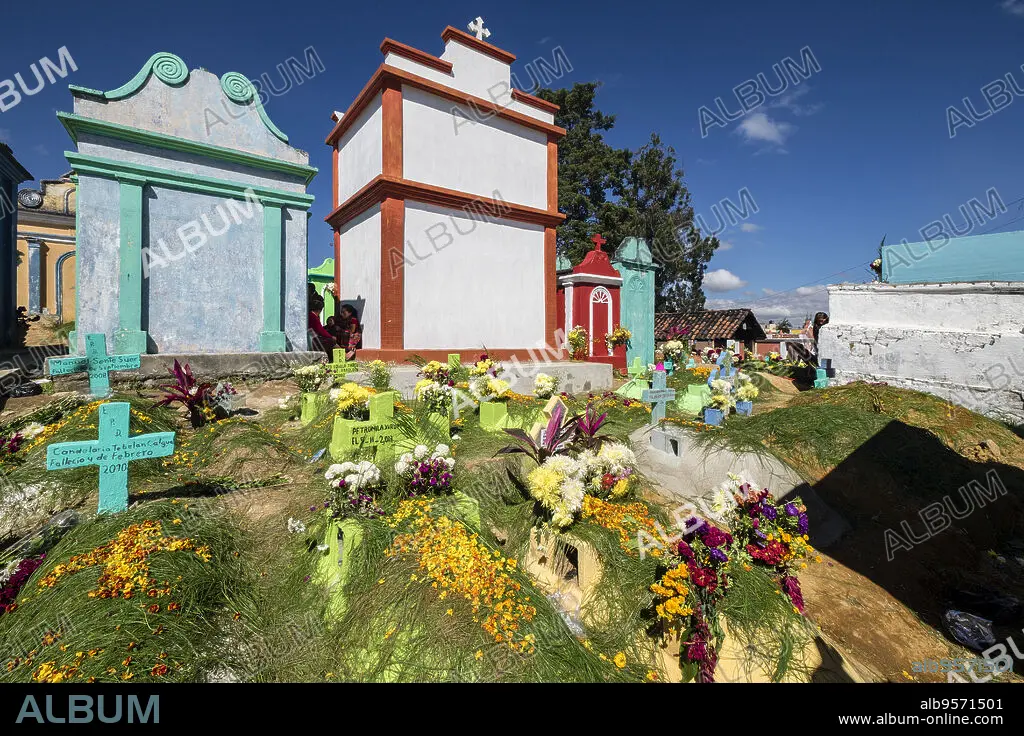 tumbas de colores, celebracion del dia de muertos en el Cementerio General, Santo Tomás Chichicastenango, República de Guatemala, América Central.