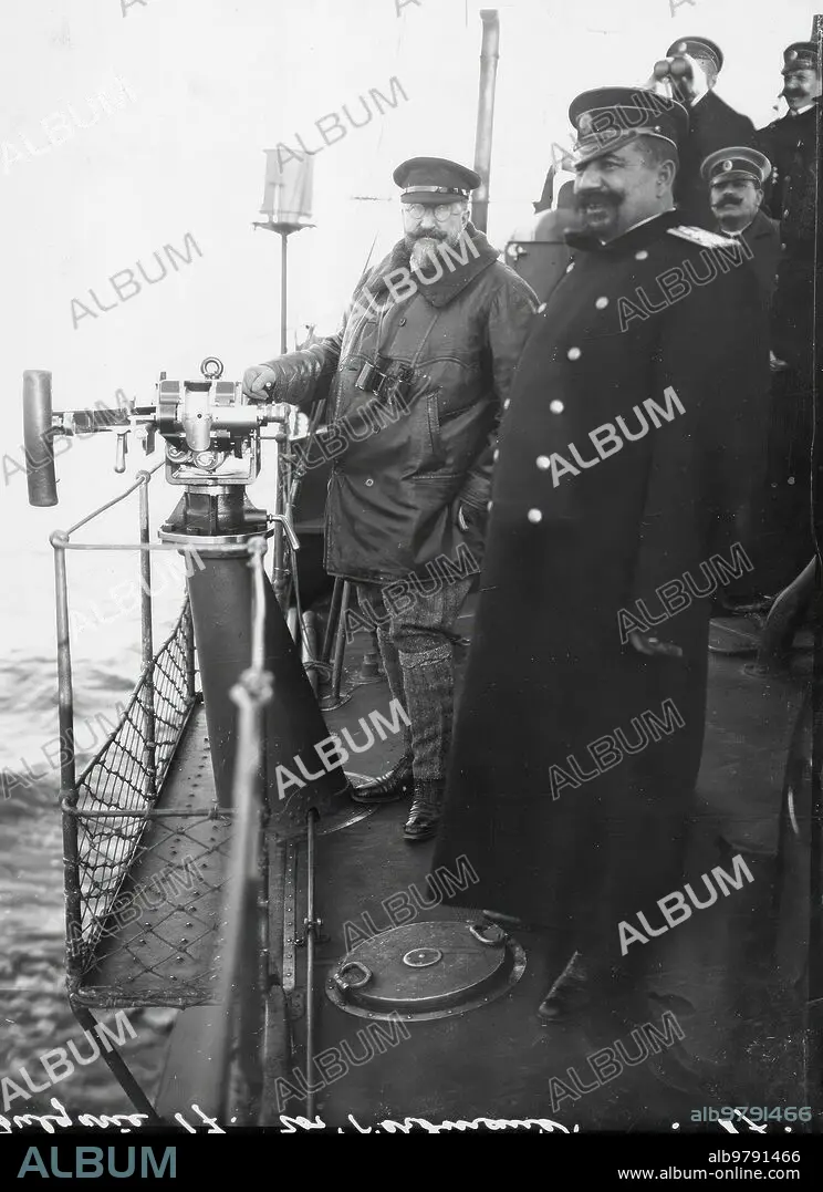 Caption: October 1915. The War in the Balkans. Tsar Ferdinand of Bulgaria aboard a torpedo boat of his squadron