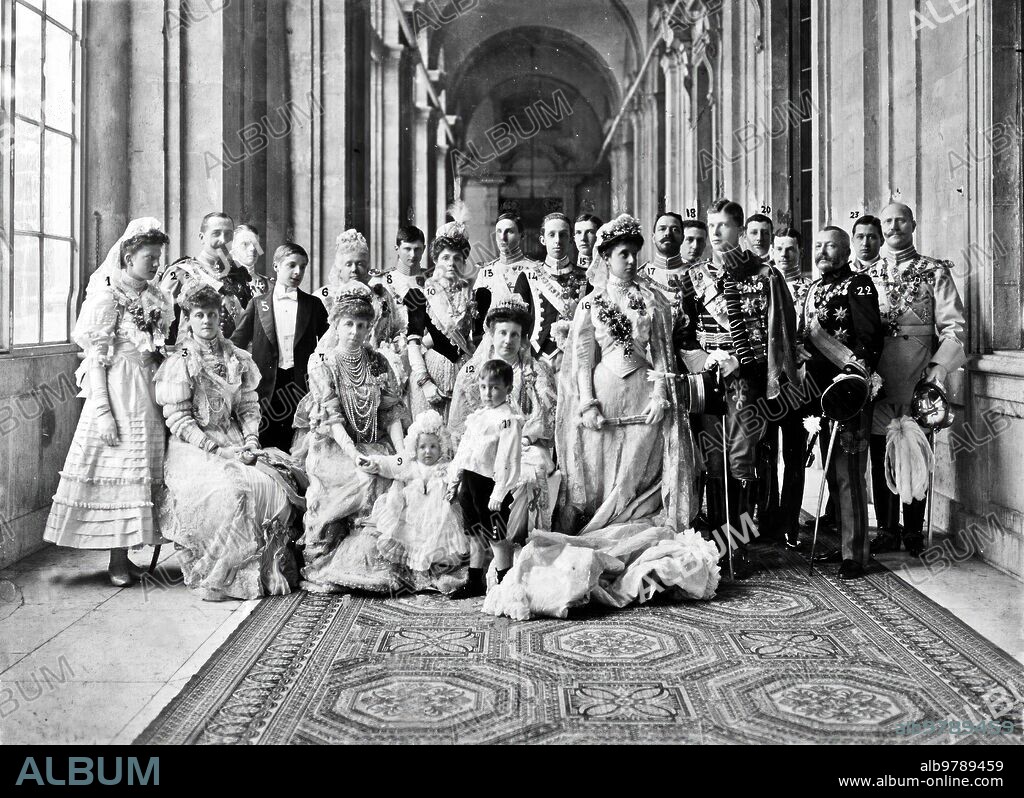 Madrid, 1/12/1906. Group photo of the wedding day of the Infanta Doña María Teresa with the Infante Don Fernando María de Baviera. 1. HRH Princess Pilar of Bavaria; 2, the Infant D. Carlos; 3, Princess Luisa of Bavaria; 4, Prince George of Bavaria; 5, Infante Luis de Orleans y Borbón; 6, Infanta Isabel; 7, HM Queen María Cristina; 8, HRH Prince Henry of Bavaria; 9, Infanta Isabel Teresa; 10, Infanta Eulalia; 11, Infante D. Alfonso; 12, Infanta Paz; 13, Infante Alfonso de Orleans y Borbón; 14, HM King Alfonso XIII; 15, HRH Prince Adalbert of Bavaria; 15, Infanta María Teresa; 17, Prince Ludwig Ferdinand of Bavaria; 18, Prince Philip of Caserta; 19, the Infante D. Fernando María of Baviera; 20, Prince Raniero of Caserta; 21, Prince Conrad of Bavaria; 22, SAIR Archduke Frederick of Austria; 23,HRH Prince Jenaro of Caserta; 24, Prince Alfonso of Bavaria