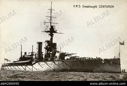 Caption: British battleship HMS Dreadnought Centurion, King George V-class, in service for the Royal Navy from 1913.