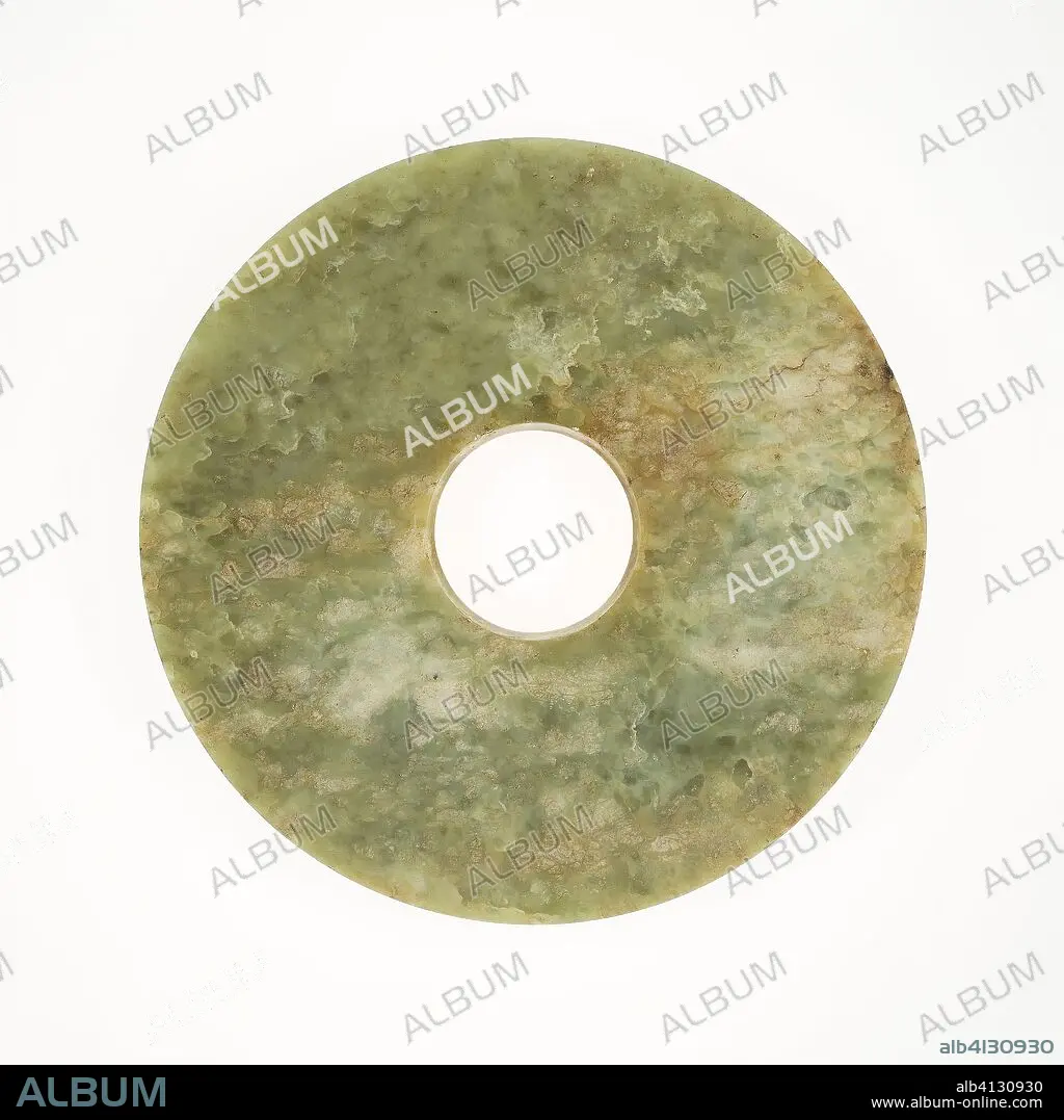 Disc (bi). China. Date: 3000 BC-2000 BC. Dimensions: Diam. 18.7 cm (7 3/8 in.); thickness 1.9 cm (3/4 in.). Jade. Origin: China.