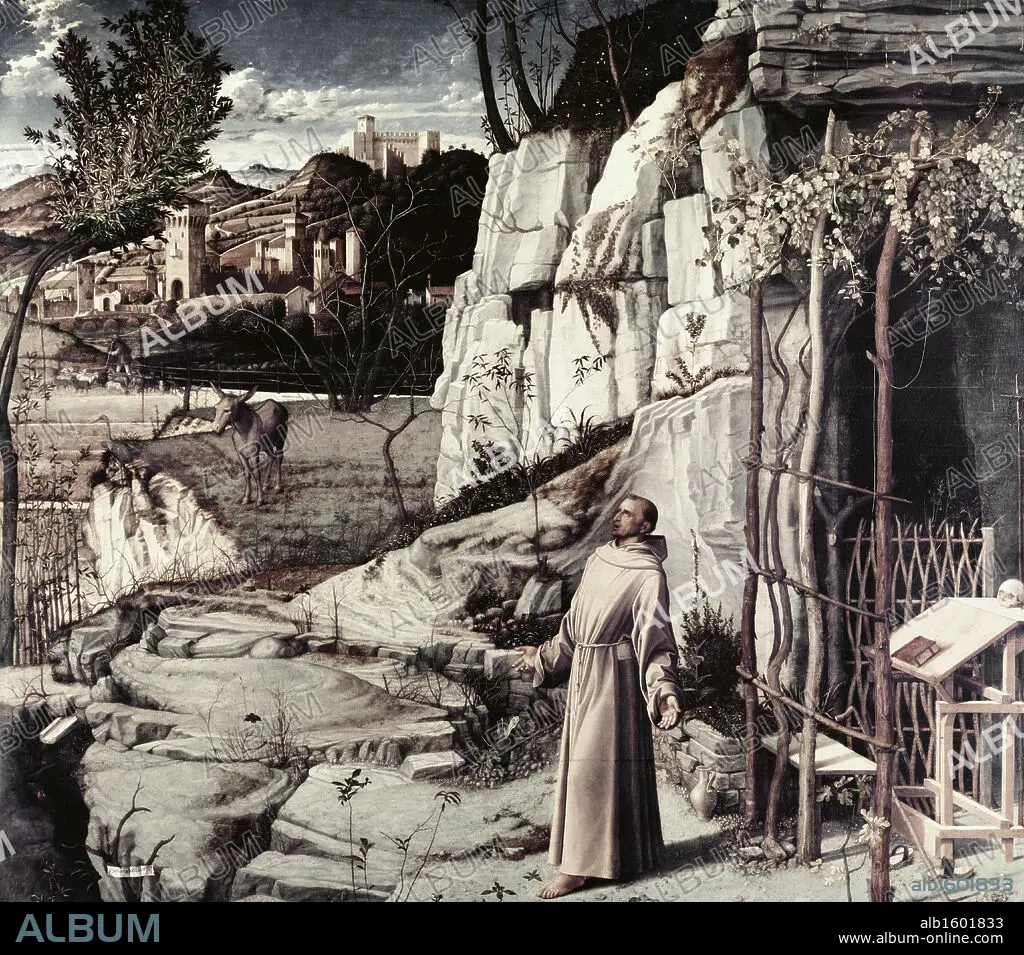 Caption: Saint Francis in Ecstasy ca.1485 Giovanni Bellini (ca.1430-1516 Italian) Oil on wood panel Frick Collection, New York City, USA