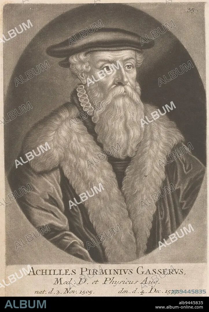 Caption: Portrait of Achilles Pirminius Gasser, Johann Jacob Haid (possibly), 1747, Numbered top right: 35., print maker: Johann Jacob Haid, (possibly), publisher: Johann Jacob Haid, (mentioned on object), Augsburg, 1747, paper, h 216 mm - w 150 mm