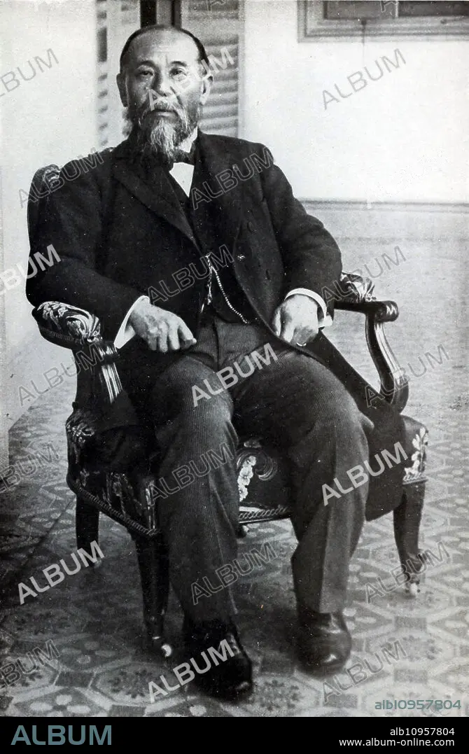 Caption: Prince Ito Hirobumi (16 October 1841 - 26 October 1909), born as Hayashi Risuke and also known as Hirofumi, Hakubun and briefly during his youth as Ito Shunsuke, was a Japanese politician, Prime Minister and preeminent member of Japan's genro, an elite group of senior statesmen who dominated the Meiji oligarchy. After Japan emerged victorious over Russia, the ensuing Japan-Korea Treaty of 1905 made Ito the first Japanese Resident-General of Korea.