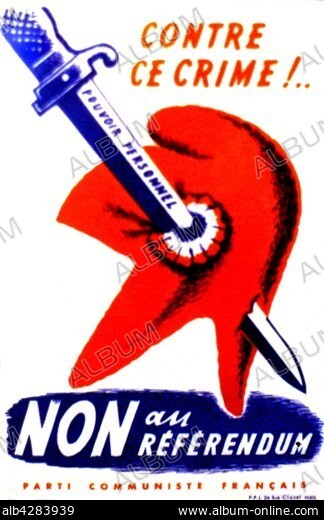 Caption: French Communist Party anti-Gaullist propaganda poster: "No to the referendum". October 28th, 1962. France. Private collection