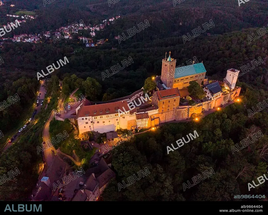 Caption: Wartburg Castle is a castle in Thuringia, situated above the town of Eisenach at the north-western end of the Thuringian Forest, 411 m above sea level. It was founded around 1067 by Louis the Knight and has been a UNESCO World Heritage Site since 1999