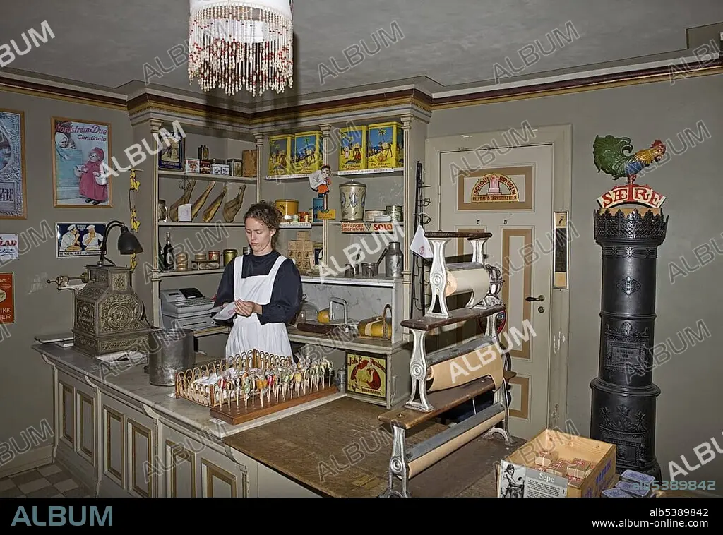 Re-enactment of an historical shop at the Norsk Folkemuseum (Norwegian Museum of Cultural History), Bygdøy, Oslo, Norway, Scandinavia, Europe.