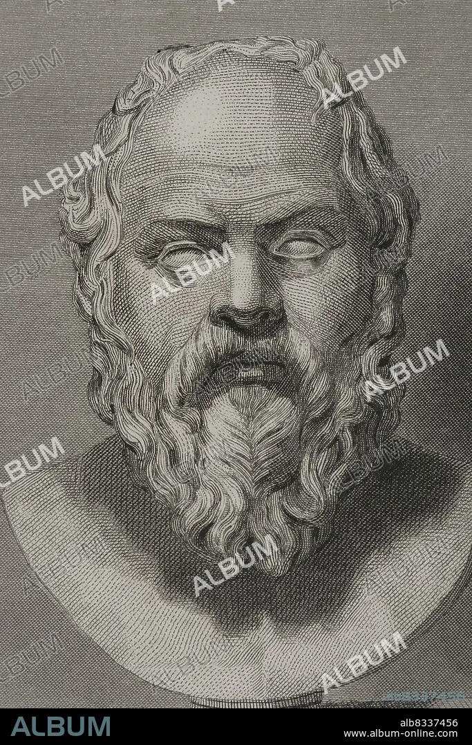 Socrates (469 BC - 399 BC). Greek philosopher. Portrait. Engraving. Detail. "Historia Universal", by César Cantú. Volume I, 1854.