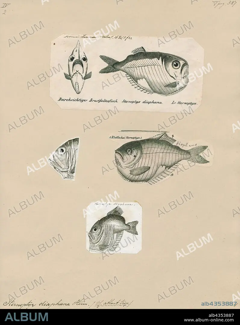 Sternoptyx diaphana, Print, Sternoptyx diaphana, the diaphanous hatchetfish, is a species of deep sea ray-finned fish in the family Sternoptychidae. It is the type species of the genus Sternoptyx, and was first described by the French naturalist Johann Hermann in 1781., 1700-1880