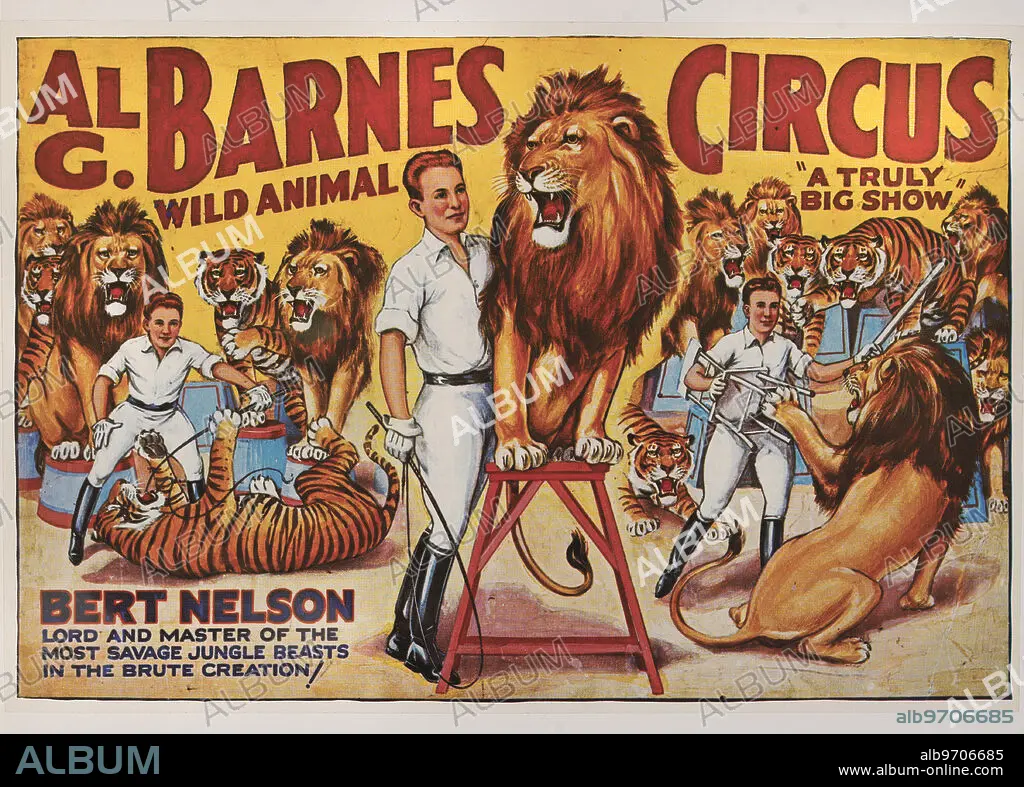 Caption: Al G. Barnes Wild Animal Circus, Bert Nelson Lord and Master of the Most Savage Jungle Beasts in the Brute Creation!, Circus Poster, Lithograph, 1930's