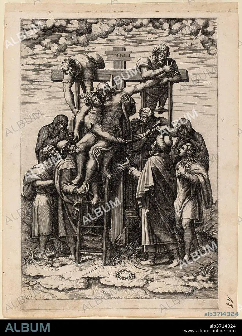 Caption: The Descent from the Cross. Dated: 1570. Dimensions: plate: 32.6 x 22.1 cm (12 13/16 x 8 11/16 in.) sheet: 35 x 26.2 cm (13 3/4 x 10 5/16 in.). Medium: engraving on laid paper.