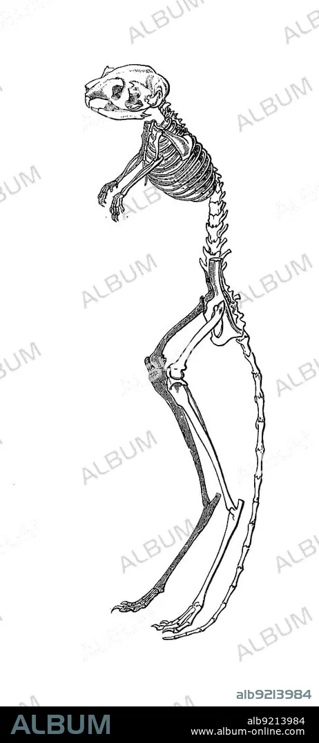 Caption: Skeleton of the great jerboa (Allactaga major), Historic, digitally restored reproduction of a 19th century original, exact original date unknown century