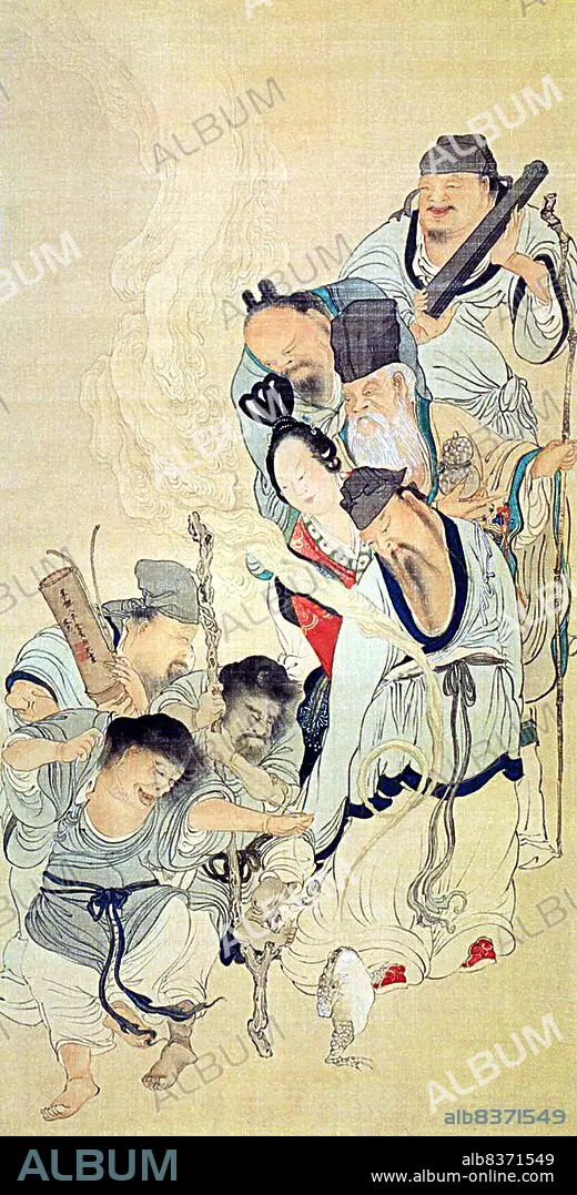 Title: Japan: Hanging scroll painting of the Eight Immortals, by Tani Buncho (1763-1840),1803, Seikado Bunko Art Museum, Tokyo