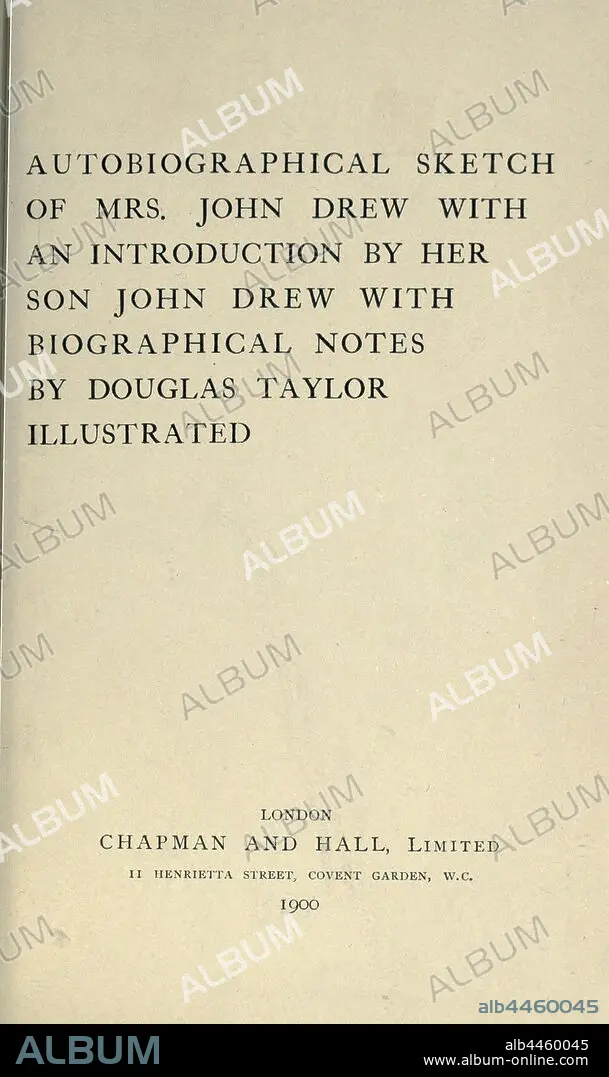 Caption: Autobiographical sketch of Mrs. John Drew. With an introd. by her son John Drew; with biographical notes by D. Taylor : Drew, Louisa (Lane), 1820-1897