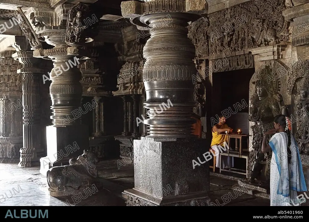 Interior of the Hoysaleswara Temple, Hoysala style, Halebidu, Karnataka, South India, India, South Asia, Asia