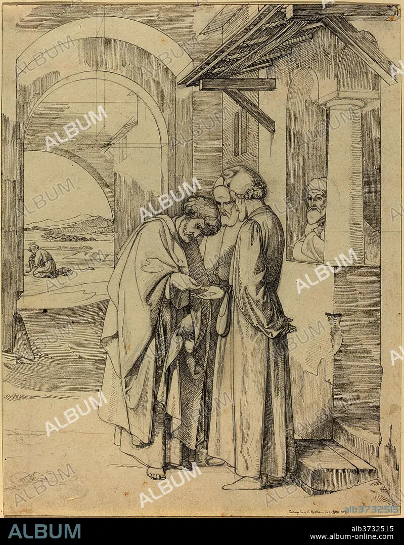 GUSTAV HEINRICH NAEKE. Peter Paying the Temple Tax. Dated: 1820/1821. Dimensions: overall: 25.2 x 19.7 cm (9 15/16 x 7 3/4 in.). Medium: pen and black ink over graphite on wove paper.