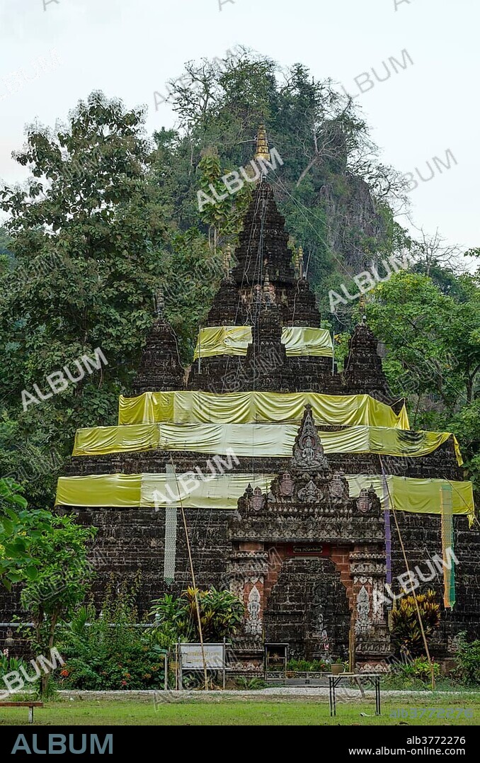 Caption: Wat Tham Pla temple or Monkey Cave temple, Mae Sai region, Chiang Rai province, northern Thailand, Thailand, Asia