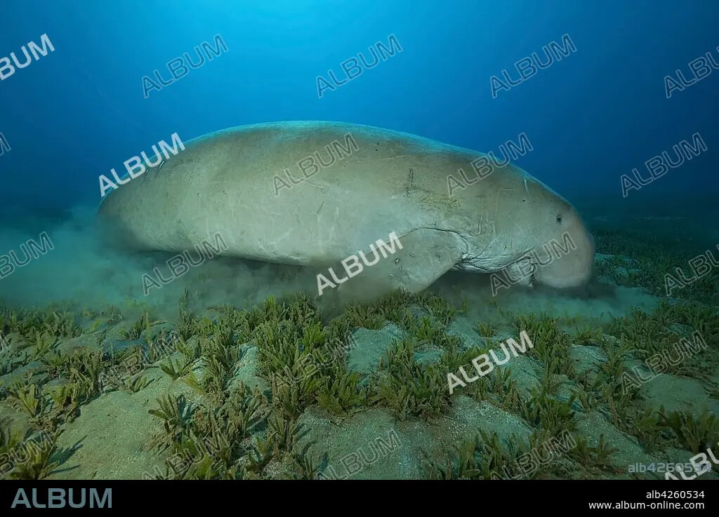 Dugong (Dugong dugon) eating sea grass, Red Sea, Hermes Bay, Marsa Alam, Egypt, Africa
