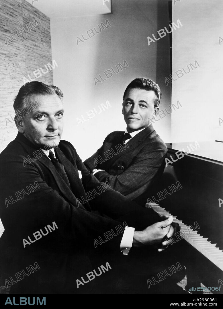 ALAN JAY LERNER (1918-1986).American composer and dramatist. Lerner, right, and Frederick Loewe (1901-1989), American (Austrian-born) composer.