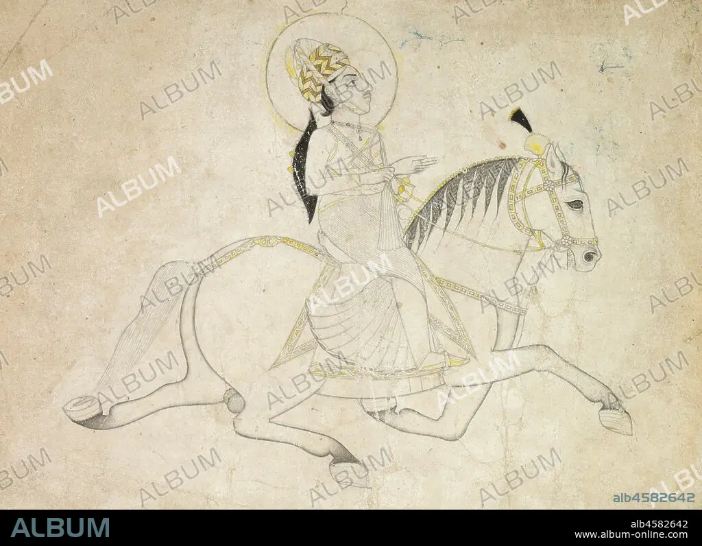 Jai Singh III of Jaipur (r. 1818-1835) Riding, c. 1820. Creator: Unknown.