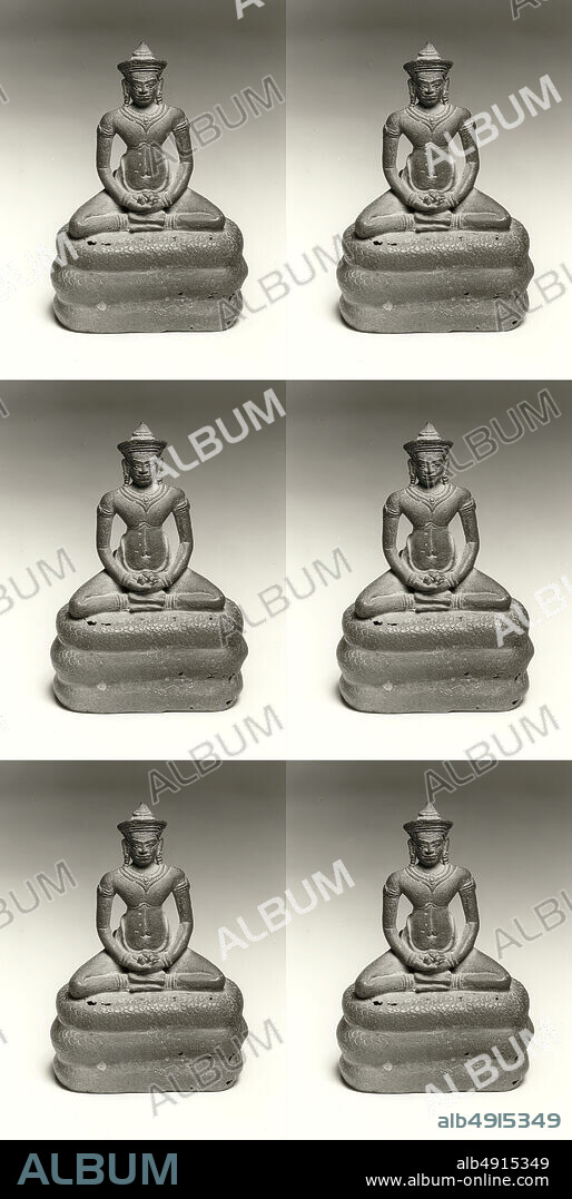Buddha Seated on the Coils of a Naga, Cambodia, Angkor period, Date first quarter of the 12th century, Cambodia, Bronze, H. 4 7/16 in. (11.3 cm); W. 3 1/16 in. (7.8 cm); D. 11/16 in. (4.3 cm), Sculpture.