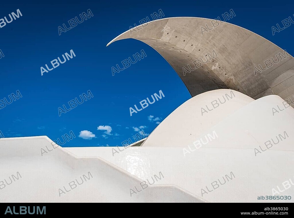 Caption: Auditorio de Tenerife Adán Martín, avant-garde congress hall, concert hall, concert hall, opera, architect Santiago Calatrava, Santa Cruz de Tenerife, Tenerife, Canary Islands, Spain, Europe