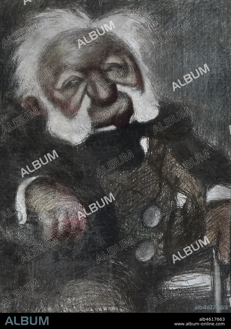 Ramón de Campoamor Campoosorio (1817-1901), poeta español del realismo literario. Caricatura de 1900.