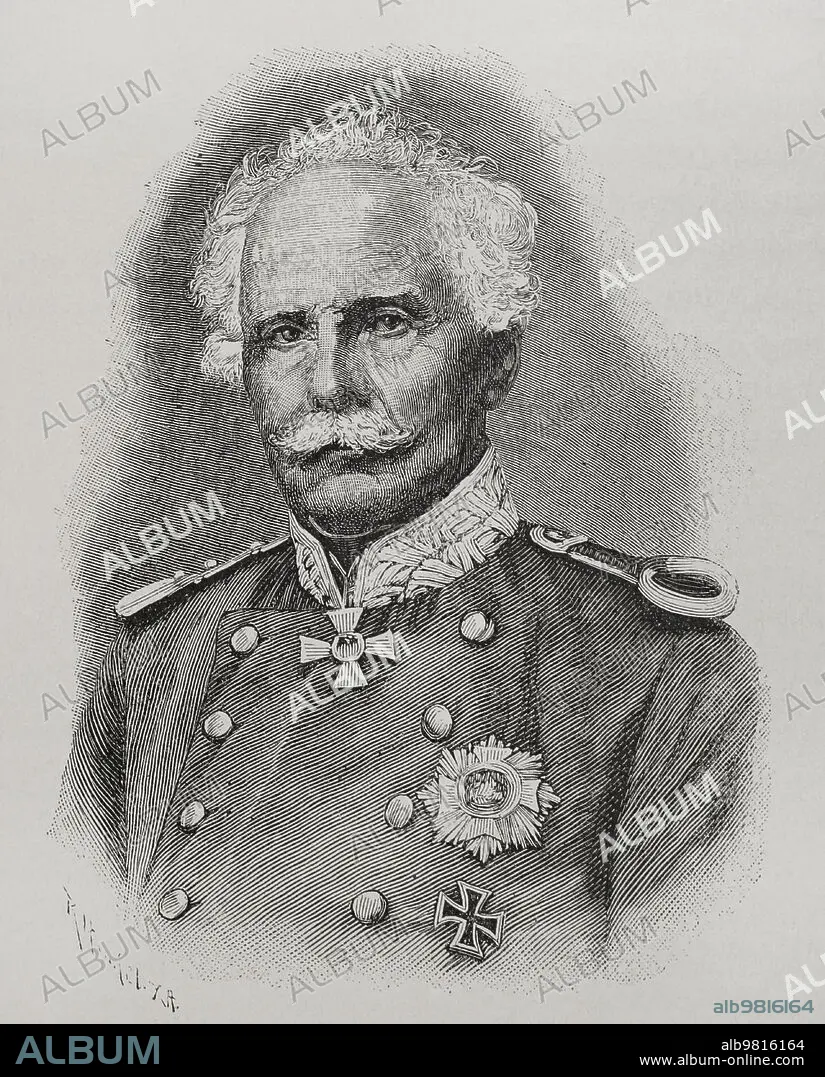 Jacob von Hartmann (1795-1873). Bavarian general. Took part in the Austro-Prussian War (1866) and the Franco-Prussian War (1870-1871). Portrait. Engraving. "Historia de la Guerra Franco-Alemana de 1870-1871". Published in Barcelona, 1891.