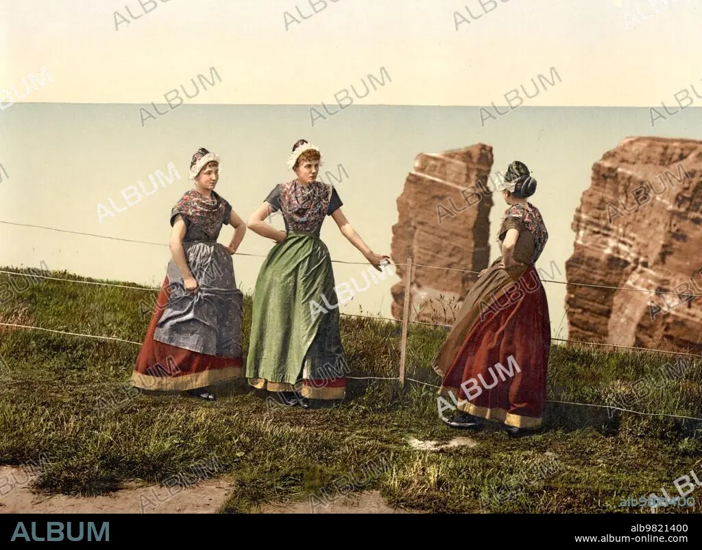 National traditional costume on Helgoland; Schleswig-Holstein; Germany; Historical; photochrome print from the 1890s; Europe.