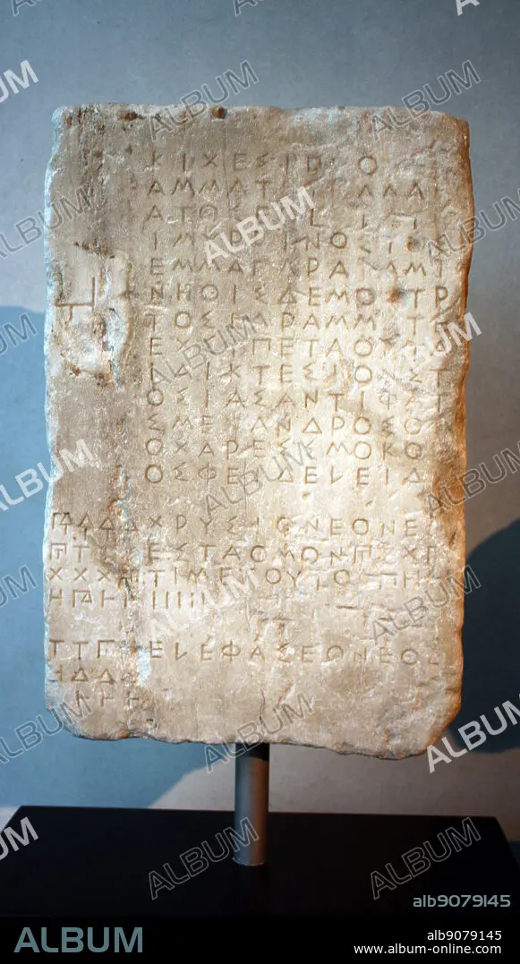 Account of the supervisors for the construction of the chryselephantine statue of Athena Parthenos in the Parthenon by the sculptor Phidias. 440-439 BC