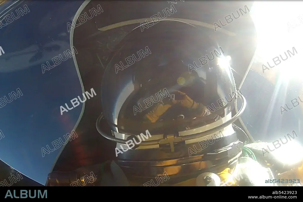 Earth Resources 2 pilot at 65,000 feet over Alaska, USA, 2014. The Earth Resources 2 (ER-2) high-altitude aircraft was used to carry the MABEL (Multiple Altimeter Beam Experimental Lidar,) instrument to study glaciers and ice sheets. The pilots were Tim Williams (seen here), and Denis Steele.