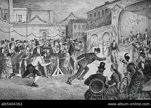 At the central skating rink in Berlin, Germany, historic wood engraving, ca. 1880, Europe