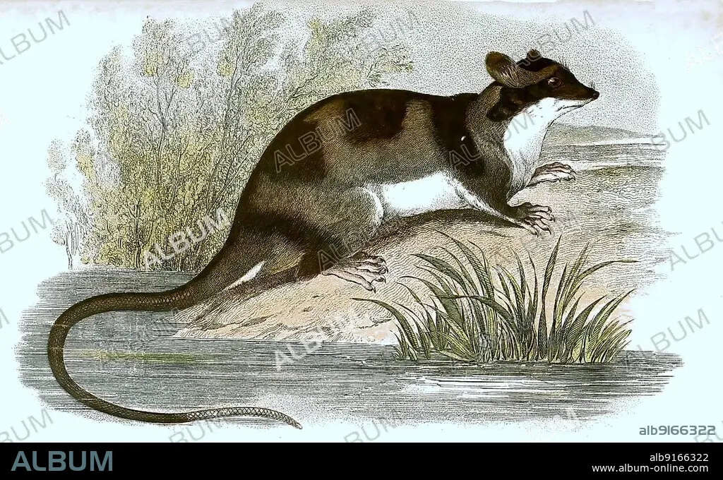 Water opossum (Chironectes minimus) or yapok, water opossum, digitally restored reproduction of an original from the 19th century