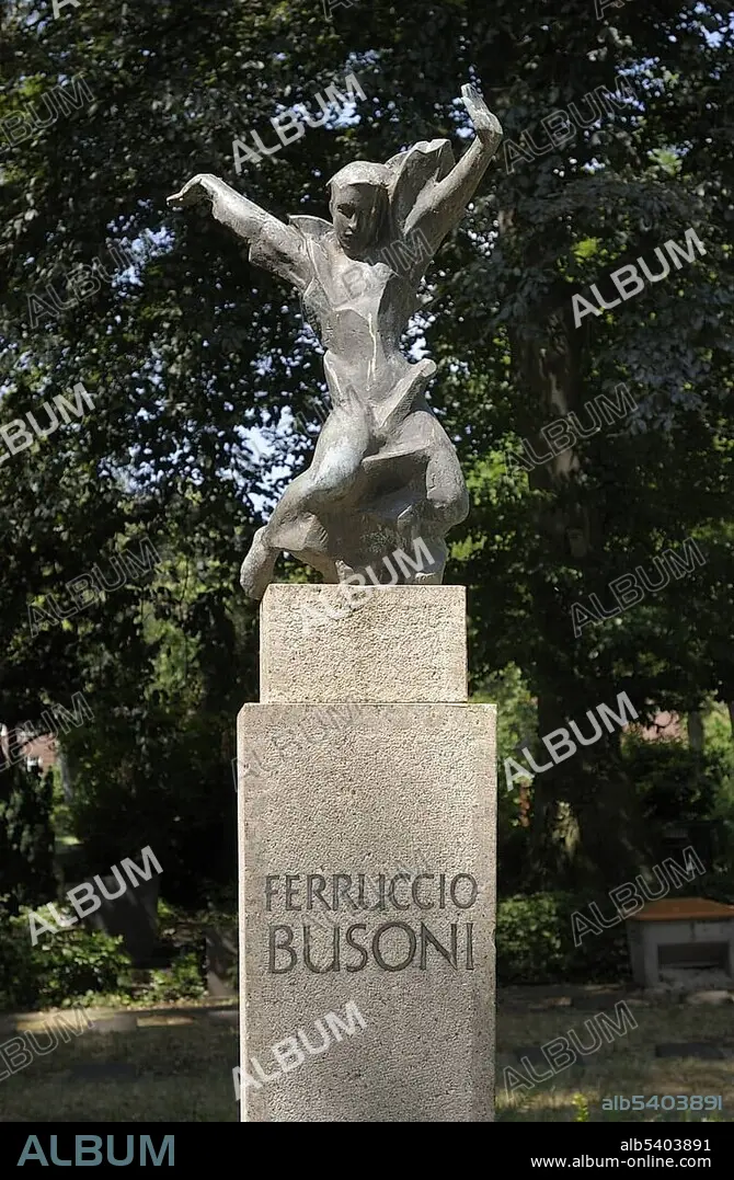 Caption: Tomb by Georg Kolbe for Ferruccio Busoni, 1866-1924, Italian composer, conductor, librettist, essayist, Staedtischer Friedhof III cemetery, Stubenrauchstrasse Tempelhof-Schoeneberg, Friedenau district, Berlin, Germany, Europe