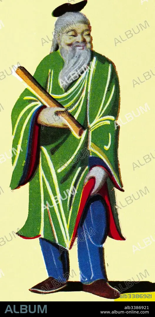Caption: 1950's English illustration depicting Laozi (Lao-Tzu or Lao-Tze), ancient Chinese philosopher and writer. He is known as the reputed author of the Tao Te Ching and the founder of philosophical Taoism. A legendary figure, Laozi is usually dated to around the 6th century BCE.