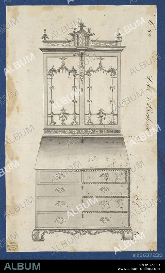 Preparatory drawing for Thomas Chippendale's 'Gentleman and Cabinet Maker's Director'. Published in reverse as plate LXXX in the 1754 and 1755 editions, renumbered as plate CIX in the 1762 edition.