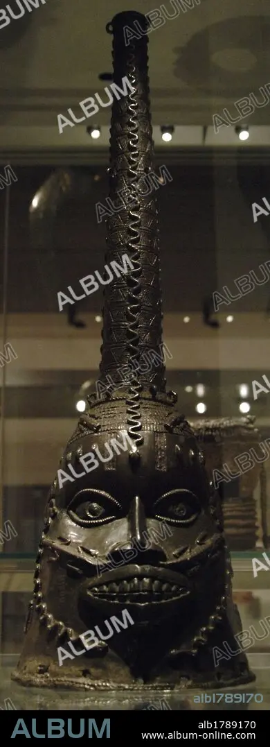 ARTE AFRICANO. NIGERIA. S. XVIII. MASCARA RITUAL ODODUA CON CASCO de latón. Reino de Benín. Museo Británico. Londres. Inglaterra. Reino Unido.