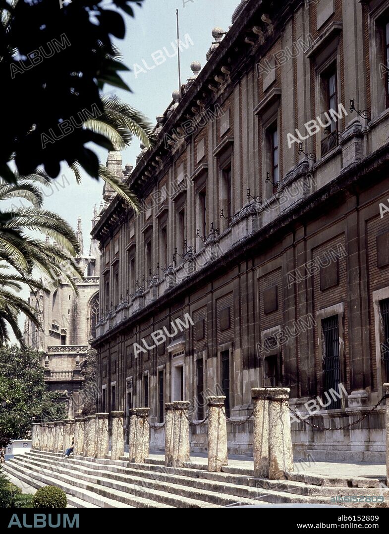 JUAN DE HERRERA 1530-97 Y JUAN DE MIJARES. EXTERIOR- FACHADA ANTIGUA LONJA Y CASA DE LA CONTRATACION - 1572