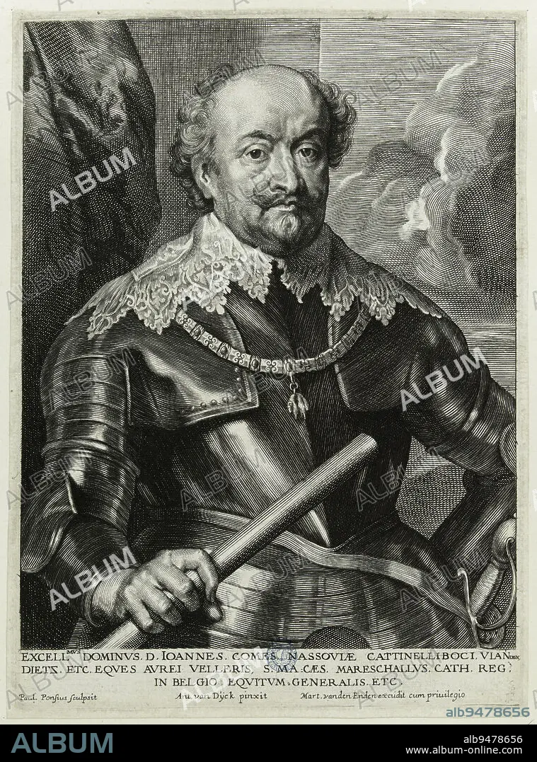 Caption: Nassau-Siegen, Count of, Van Dyck, Antoine or Anthonie or Antoon, Model, Pontius, Paulus, Aquafortist, Van den Enden, Martin, Printmaker, Between 1634 and 1636, 2nd quarter of the 17th century, Graphic arts, Original print, Etching, Paper, Burin, Height: 24.5 cm, Width: 17.8 cm
